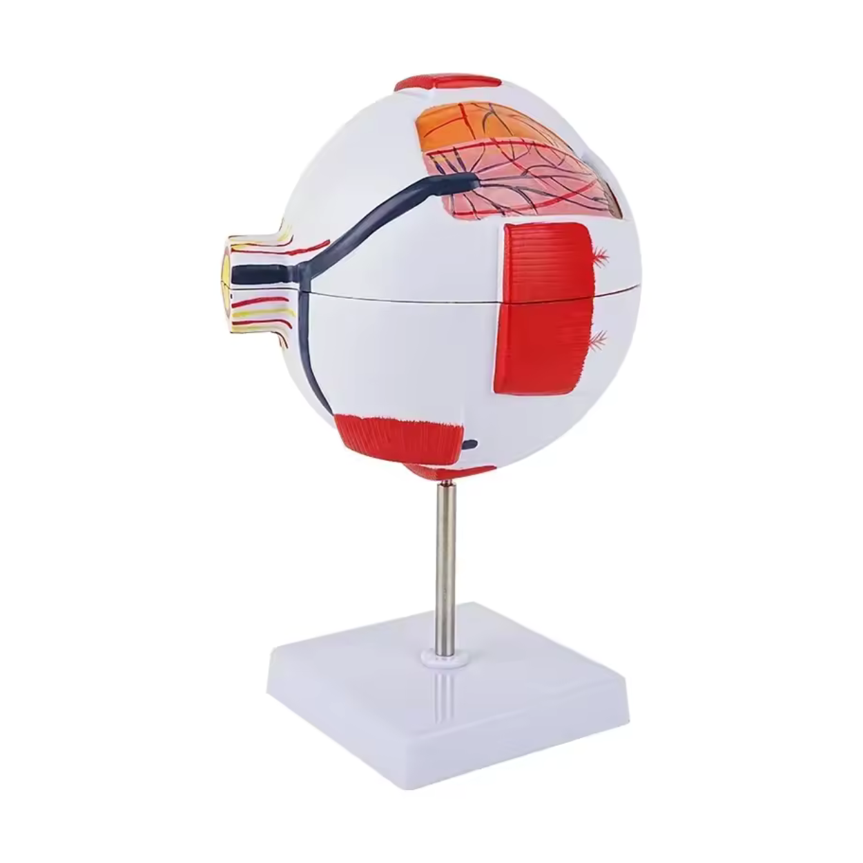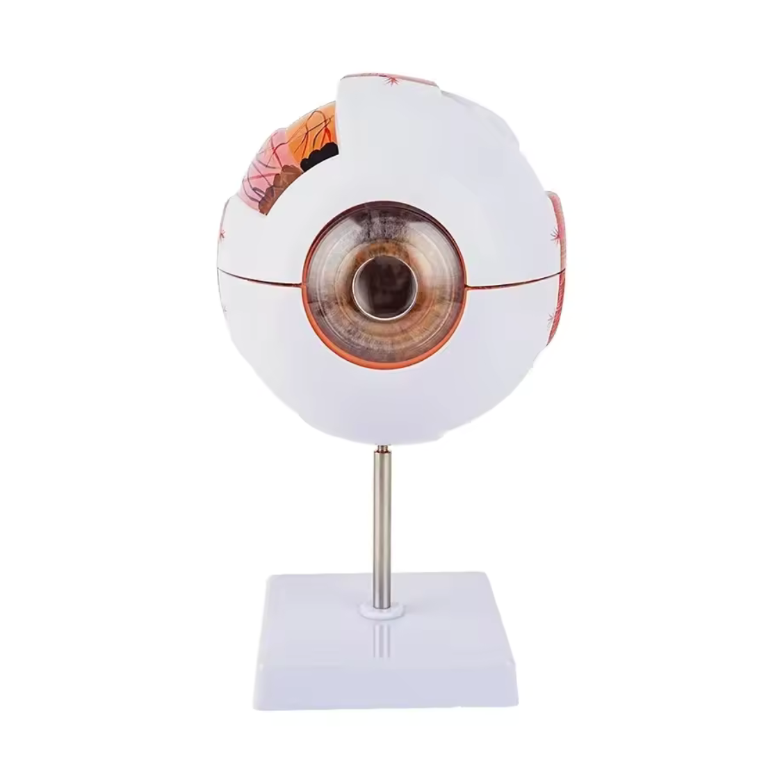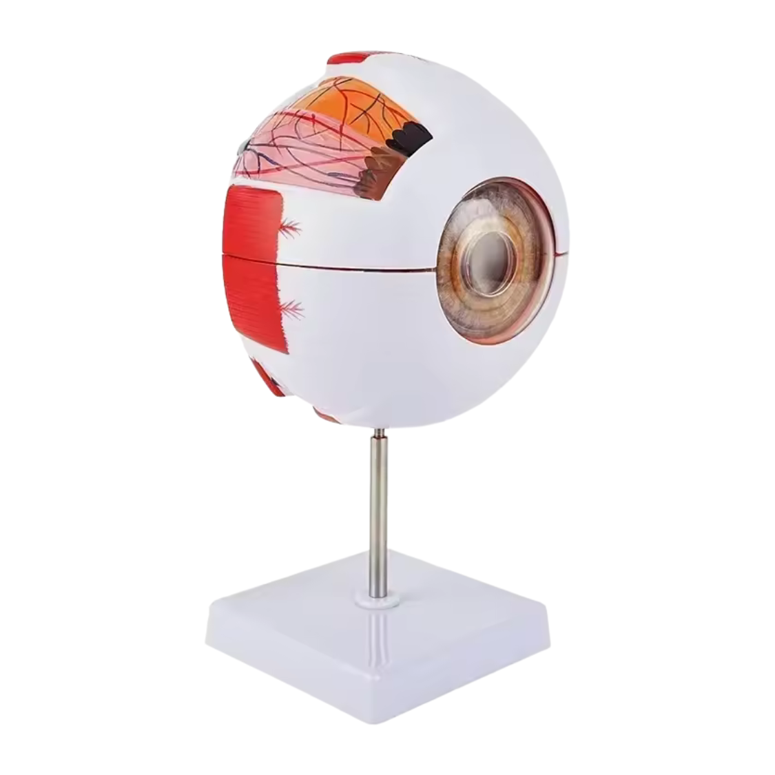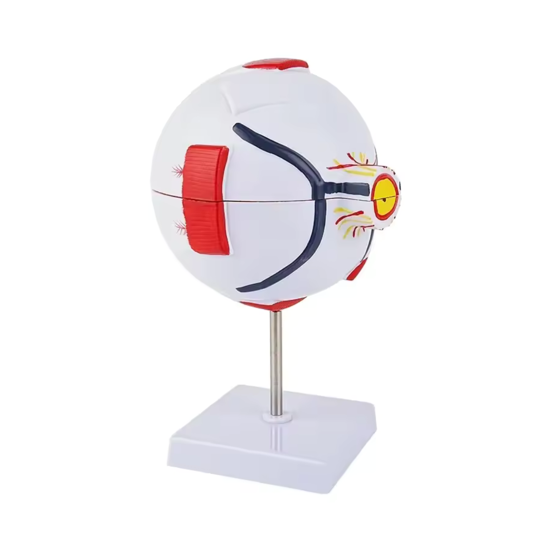 Das Augenmodell „Alessandro“ bietet eine detailreiche, 6-fach vergrößerte Darstellung des menschlichen Auges und eignet sich ideal für medizinische Ausbildung, Unterricht und Demonstrationen. Alle wichtigen Strukturen – einschließlich Hornhaut, Linse, Netzhaut und Sehnerv – sind präzise modelliert und klar erkennbar, sodass Lernende die komplexe Anatomie des Augapfels leicht nachvollziehen können.